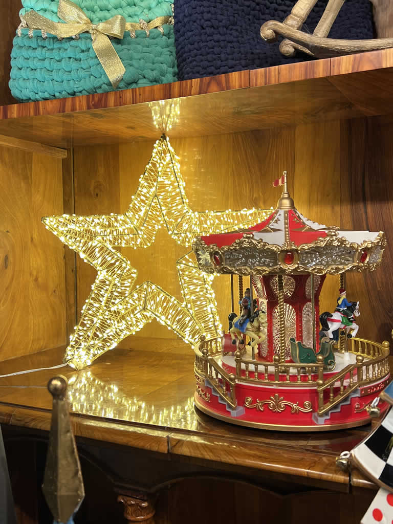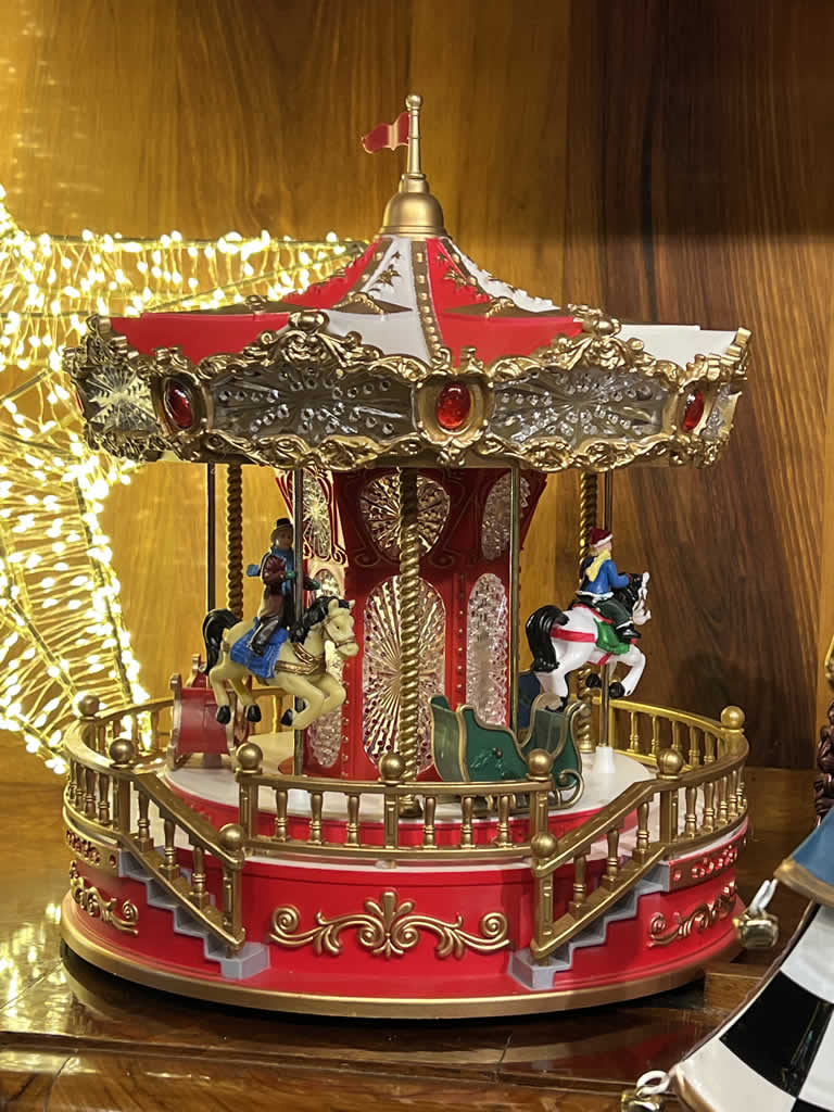 Carillon giostra rossa natalizia- Fantin – carillon musicale con luci e due diverse modalità di azione
